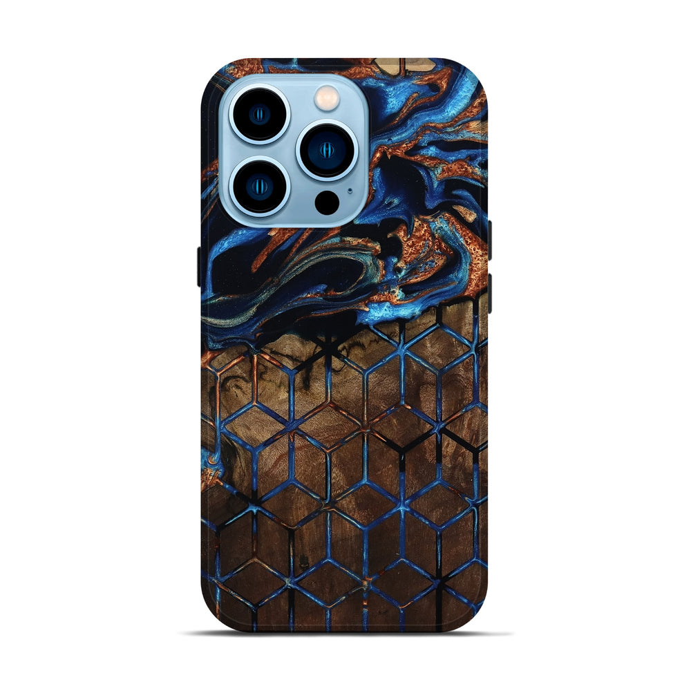Our Live Edge cases are made from an amazing combination of stabilized wood burl and colored resin. Our stabilization process hardens the wood to protect against cracks and breaks. We do every step of the process at our shop in Northern Indiana. Perfectly fits the iPhone 14 Pro.