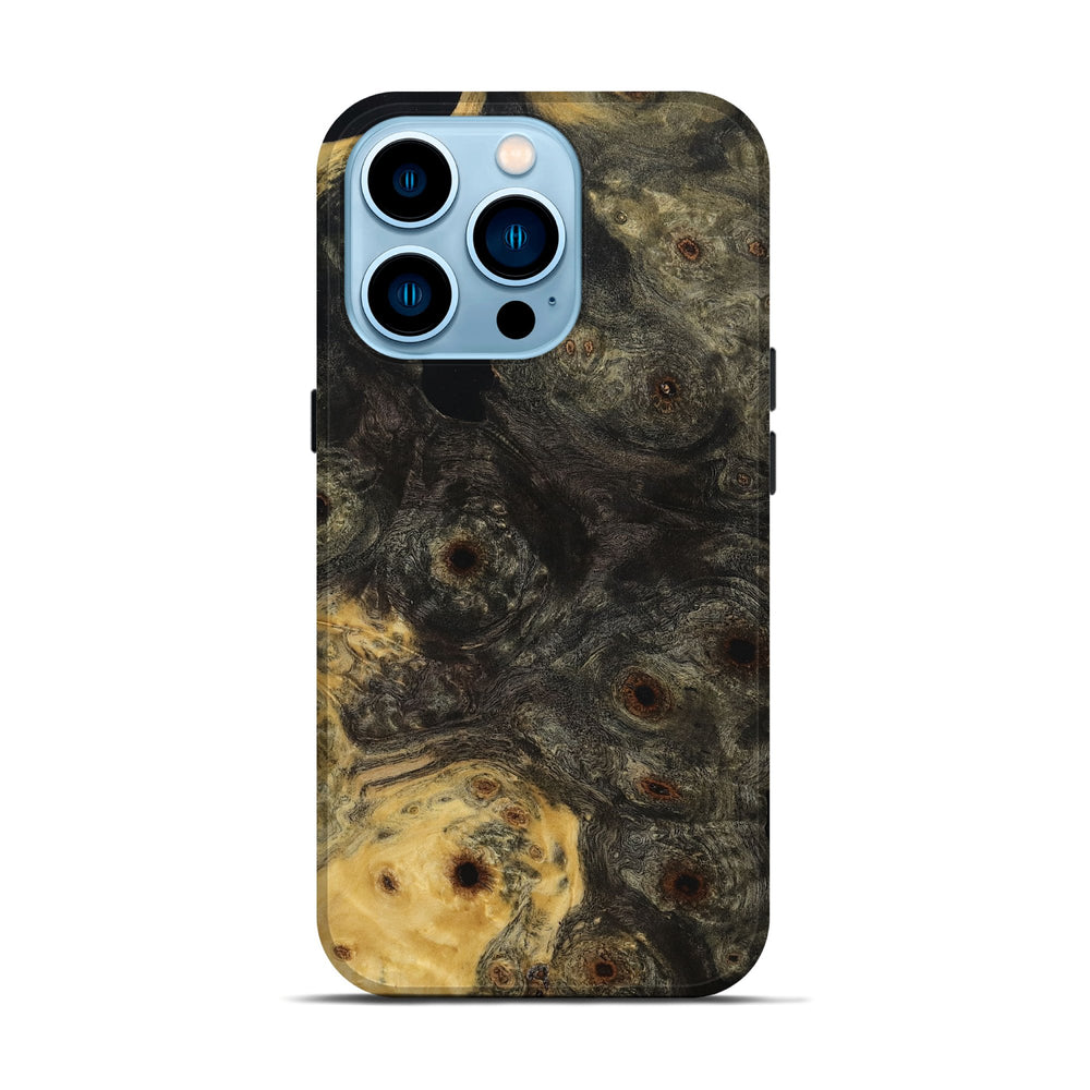 Our Live Edge cases are made from an amazing combination of stabilized wood burl and colored resin. Our stabilization process hardens the wood to protect against cracks and breaks. We do every step of the process at our shop in Northern Indiana. Perfectly fits the iPhone 14 Pro.