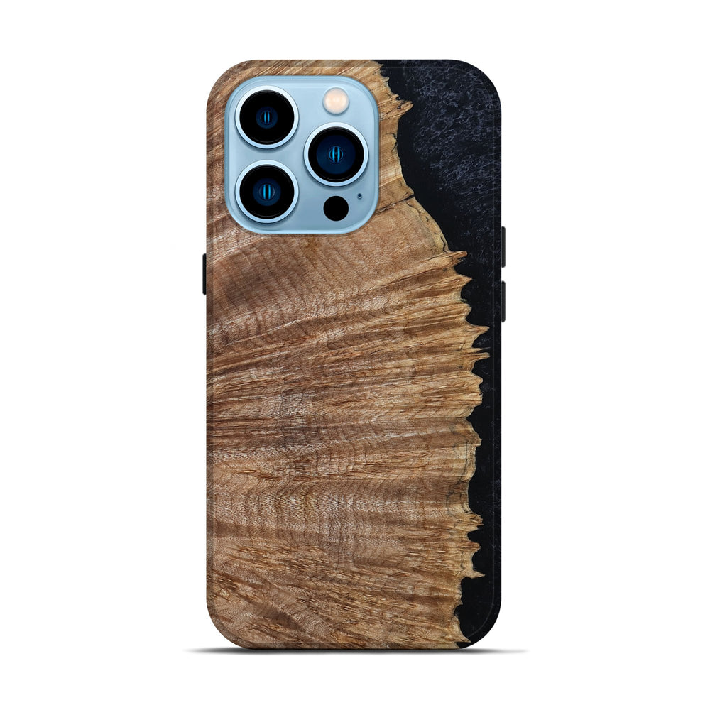 Our Live Edge cases are made from an amazing combination of stabilized wood burl and colored resin. Our stabilization process hardens the wood to protect against cracks and breaks. We do every step of the process at our shop in Northern Indiana. Perfectly fits the iPhone 14 Pro.