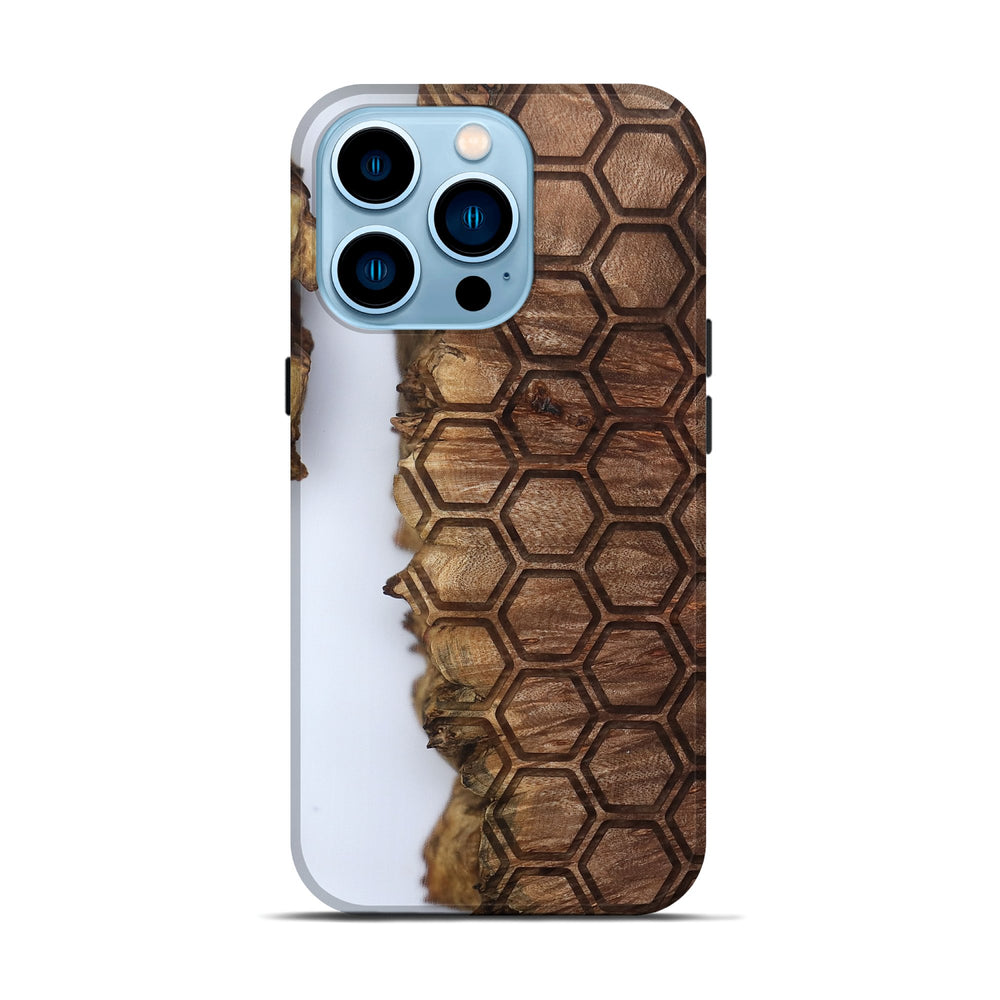 Our Live Edge cases are made from an amazing combination of stabilized wood burl and colored resin. Our stabilization process hardens the wood to protect against cracks and breaks. We do every step of the process at our shop in Northern Indiana. Perfectly fits the iPhone 14 Pro.