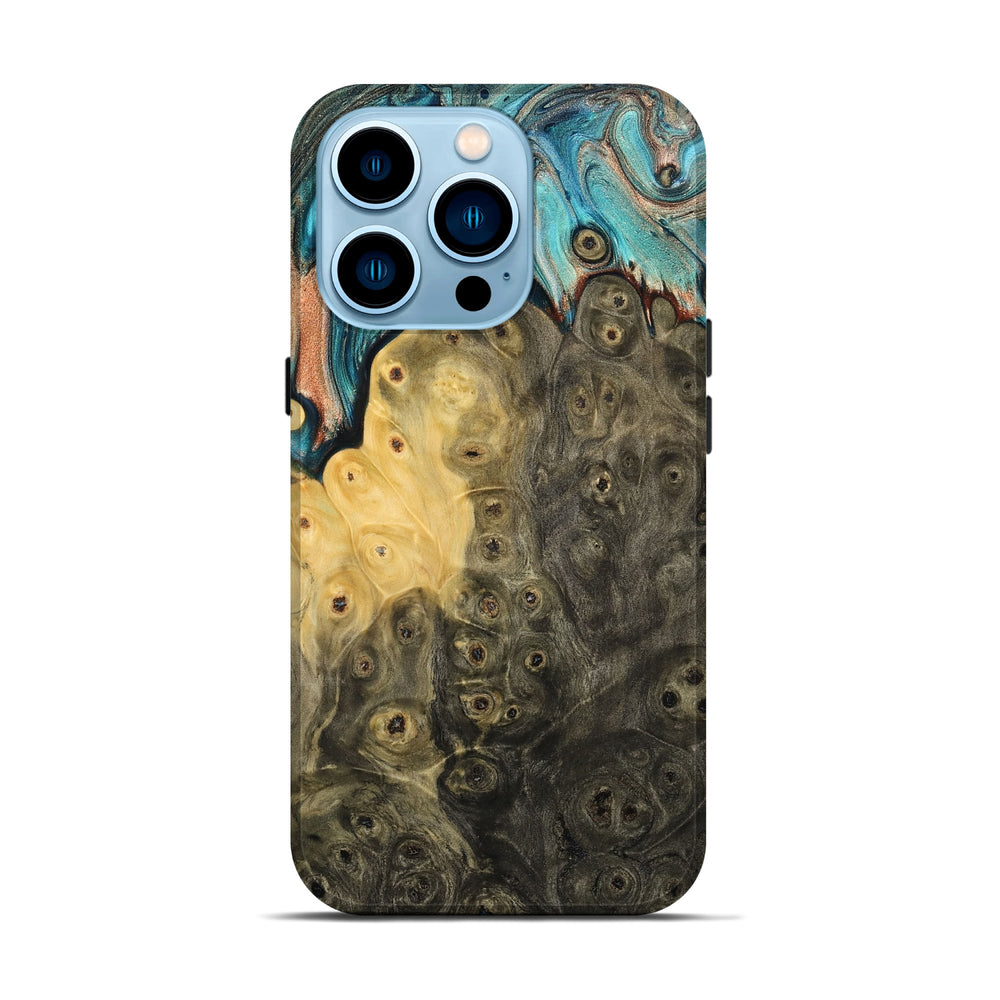 Our Live Edge cases are made from an amazing combination of stabilized wood burl and colored resin. Our stabilization process hardens the wood to protect against cracks and breaks. We do every step of the process at our shop in Northern Indiana. Perfectly fits the iPhone 14 Pro.