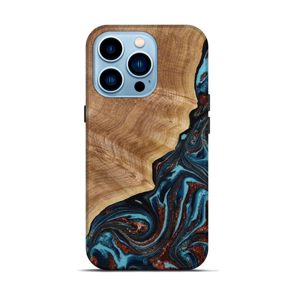 Our Live Edge cases are made from an amazing combination of stabilized wood burl and colored resin. Our stabilization process hardens the wood to protect against cracks and breaks. We do every step of the process at our shop in Northern Indiana. Perfectly fits the iPhone 14 Pro.