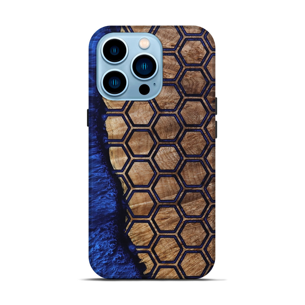 Our Live Edge cases are made from an amazing combination of stabilized wood burl and colored resin. Our stabilization process hardens the wood to protect against cracks and breaks. We do every step of the process at our shop in Northern Indiana. Perfectly fits the iPhone 14 Pro.
