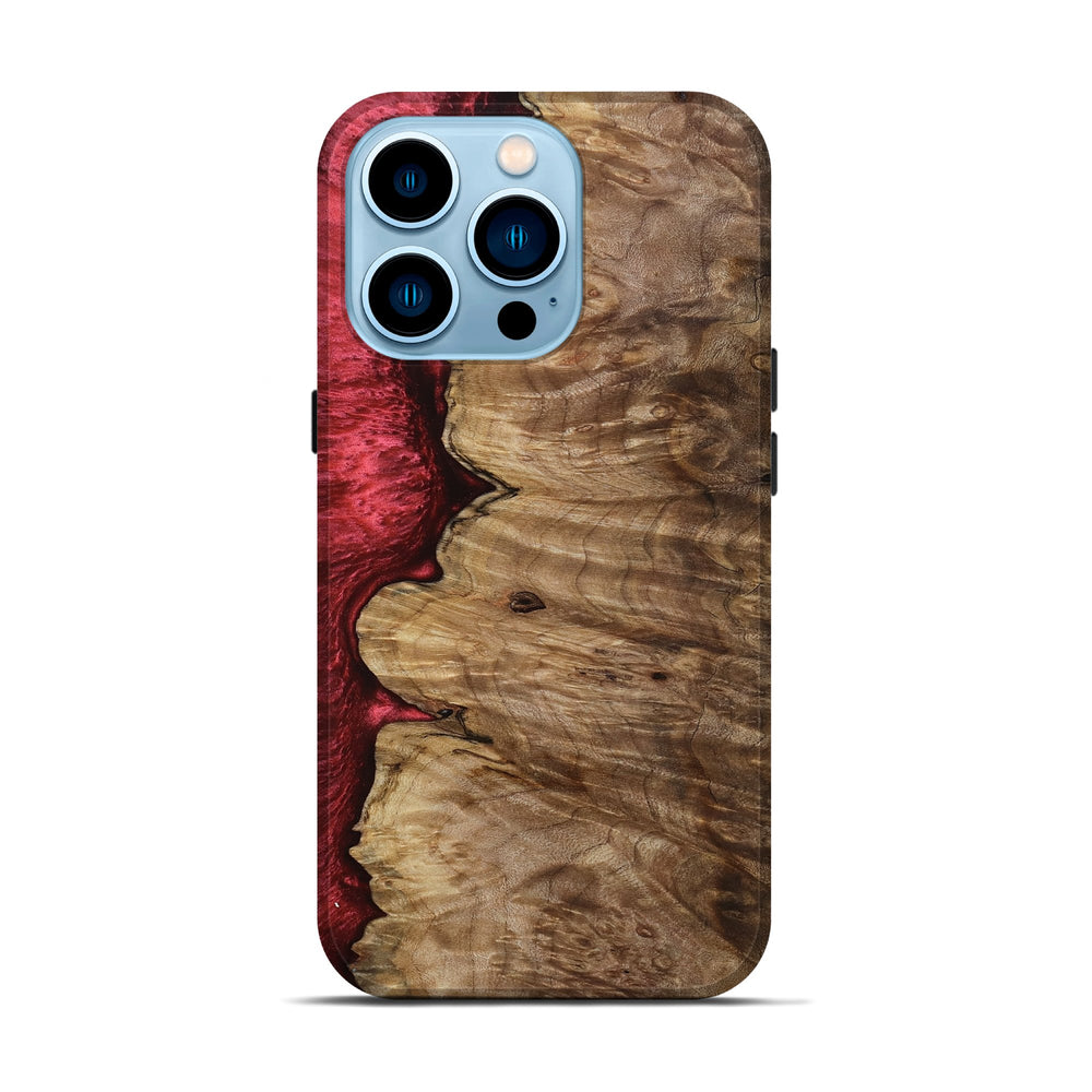 Our Live Edge cases are made from an amazing combination of stabilized wood burl and colored resin. Our stabilization process hardens the wood to protect against cracks and breaks. We do every step of the process at our shop in Northern Indiana. Perfectly fits the iPhone 14 Pro.