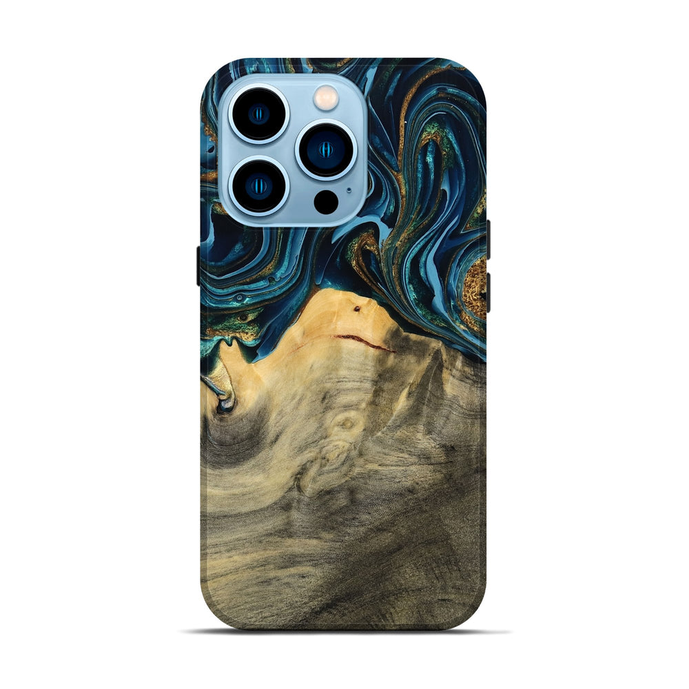 Our Live Edge cases are made from an amazing combination of stabilized wood burl and colored resin. Our stabilization process hardens the wood to protect against cracks and breaks. We do every step of the process at our shop in Northern Indiana. Perfectly fits the iPhone 14 Pro.