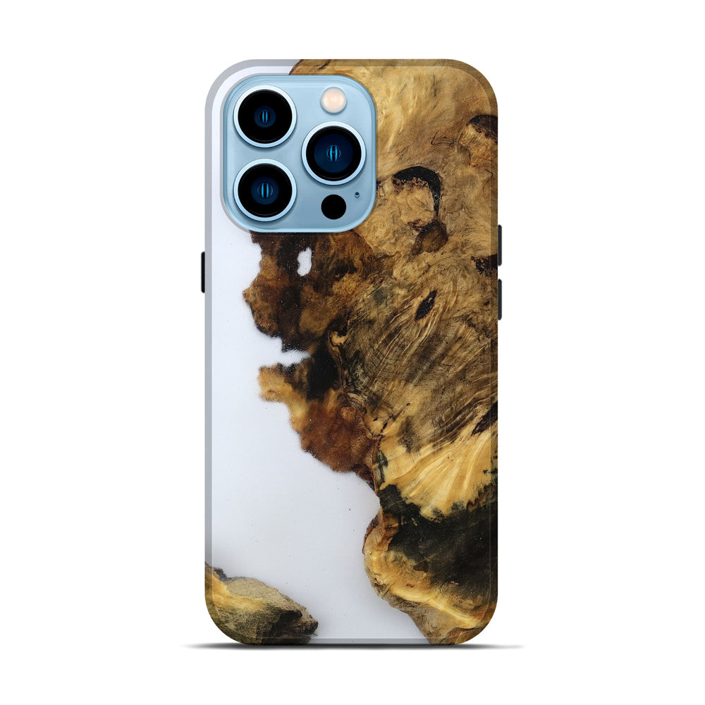 Our Live Edge cases are made from an amazing combination of stabilized wood burl and colored resin. Our stabilization process hardens the wood to protect against cracks and breaks. We do every step of the process at our shop in Northern Indiana. Perfectly fits the iPhone 14 Pro.