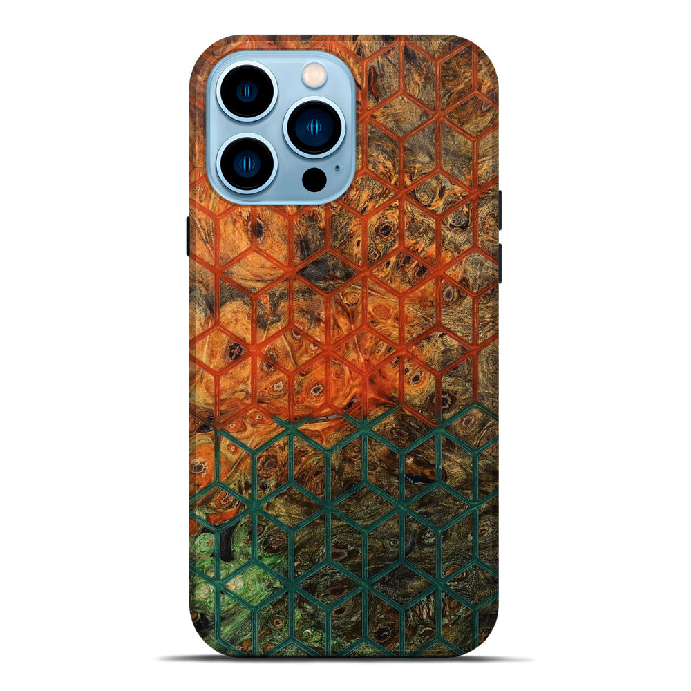 Our Live Edge cases are made from an amazing combination of stabilized wood burl and colored resin. Our stabilization process hardens the wood to protect against cracks and breaks. We do every step of the process at our shop in Northern Indiana. Perfectly fits the iPhone 14 Pro Max.