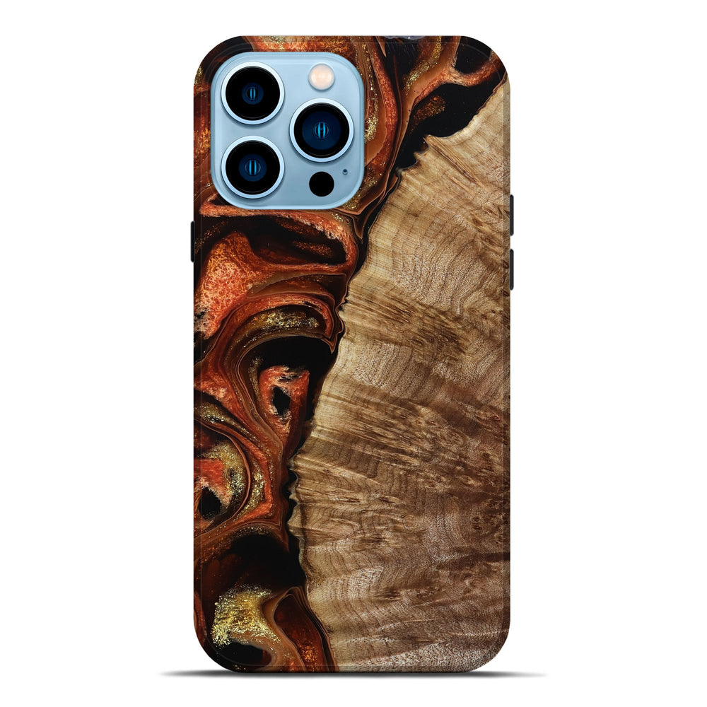 Our Live Edge cases are made from an amazing combination of stabilized wood burl and colored resin. Our stabilization process hardens the wood to protect against cracks and breaks. We do every step of the process at our shop in Northern Indiana. Perfectly fits the iPhone 14 Pro Max.