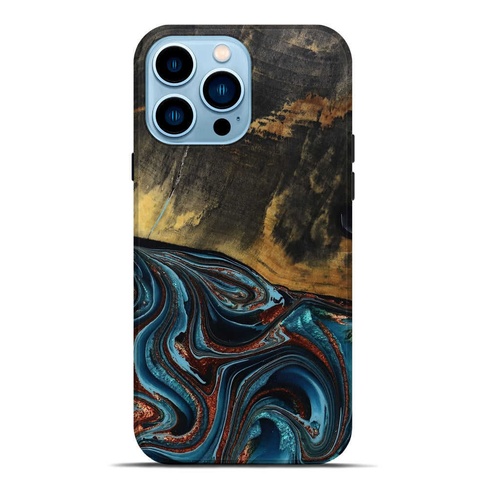 Our Live Edge cases are made from an amazing combination of stabilized wood burl and colored resin. Our stabilization process hardens the wood to protect against cracks and breaks. We do every step of the process at our shop in Northern Indiana. Perfectly fits the iPhone 14 Pro Max.