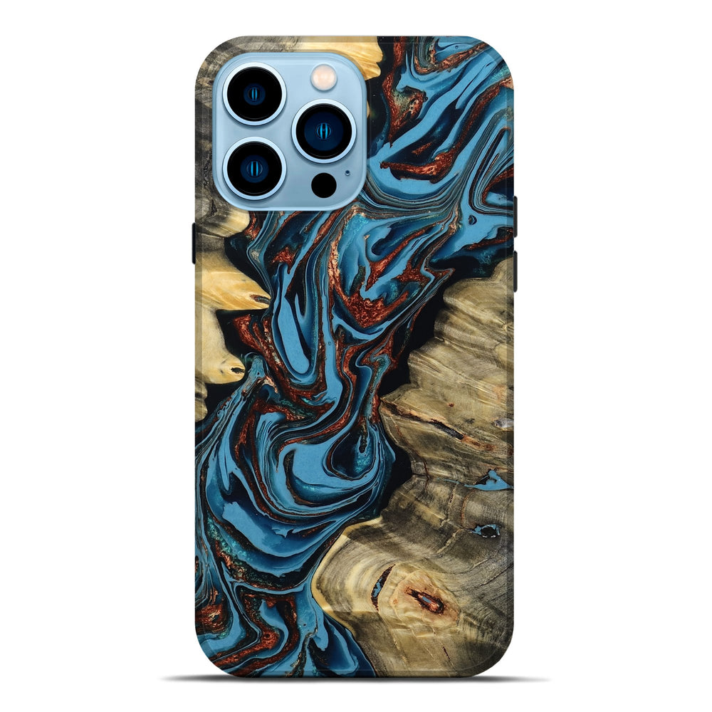 Our Live Edge cases are made from an amazing combination of stabilized wood burl and colored resin. Our stabilization process hardens the wood to protect against cracks and breaks. We do every step of the process at our shop in Northern Indiana. Perfectly fits the iPhone 14 Pro Max.