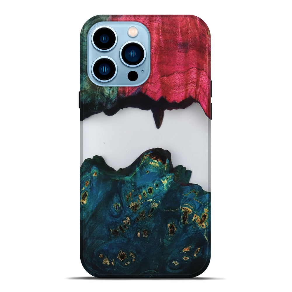 Our Live Edge cases are made from an amazing combination of stabilized wood burl and colored resin. Our stabilization process hardens the wood to protect against cracks and breaks. We do every step of the process at our shop in Northern Indiana. Perfectly fits the iPhone 14 Pro Max.