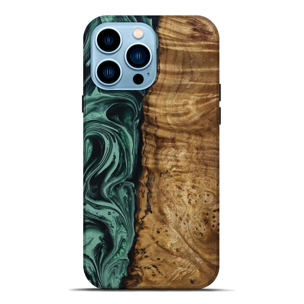 Our Live Edge cases are made from an amazing combination of stabilized wood burl and colored resin. Our stabilization process hardens the wood to protect against cracks and breaks. We do every step of the process at our shop in Northern Indiana. Perfectly fits the iPhone 14 Pro Max.