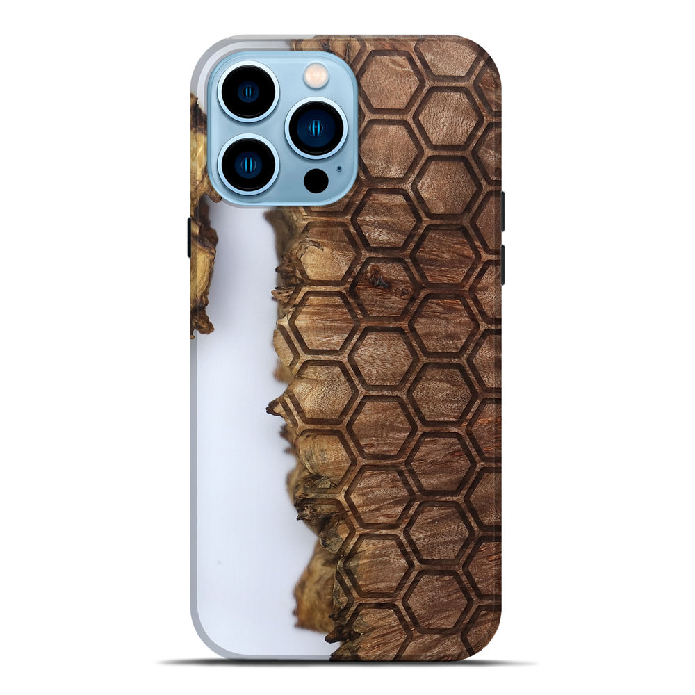 Our Live Edge cases are made from an amazing combination of stabilized wood burl and colored resin. Our stabilization process hardens the wood to protect against cracks and breaks. We do every step of the process at our shop in Northern Indiana. Perfectly fits the iPhone 14 Pro Max.