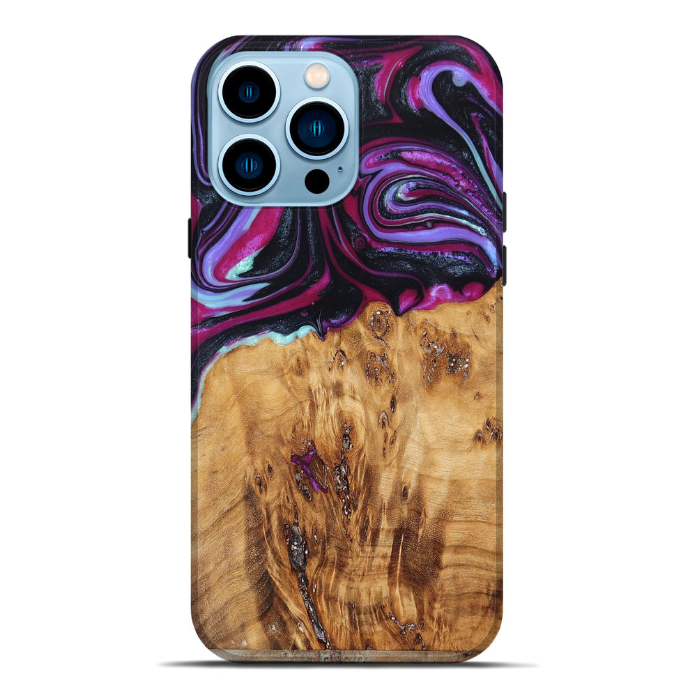Our Live Edge cases are made from an amazing combination of stabilized wood burl and colored resin. Our stabilization process hardens the wood to protect against cracks and breaks. We do every step of the process at our shop in Northern Indiana. Perfectly fits the iPhone 14 Pro Max.