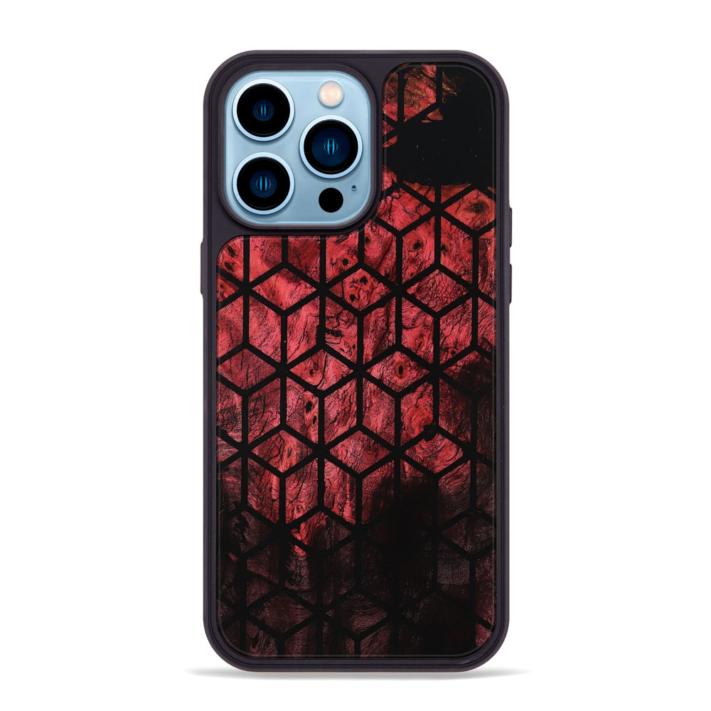 Ian has a striking pattern of hexagons filled with rich shades of red and black. The dyed wood creates an eye-catching design that draws the viewer in.