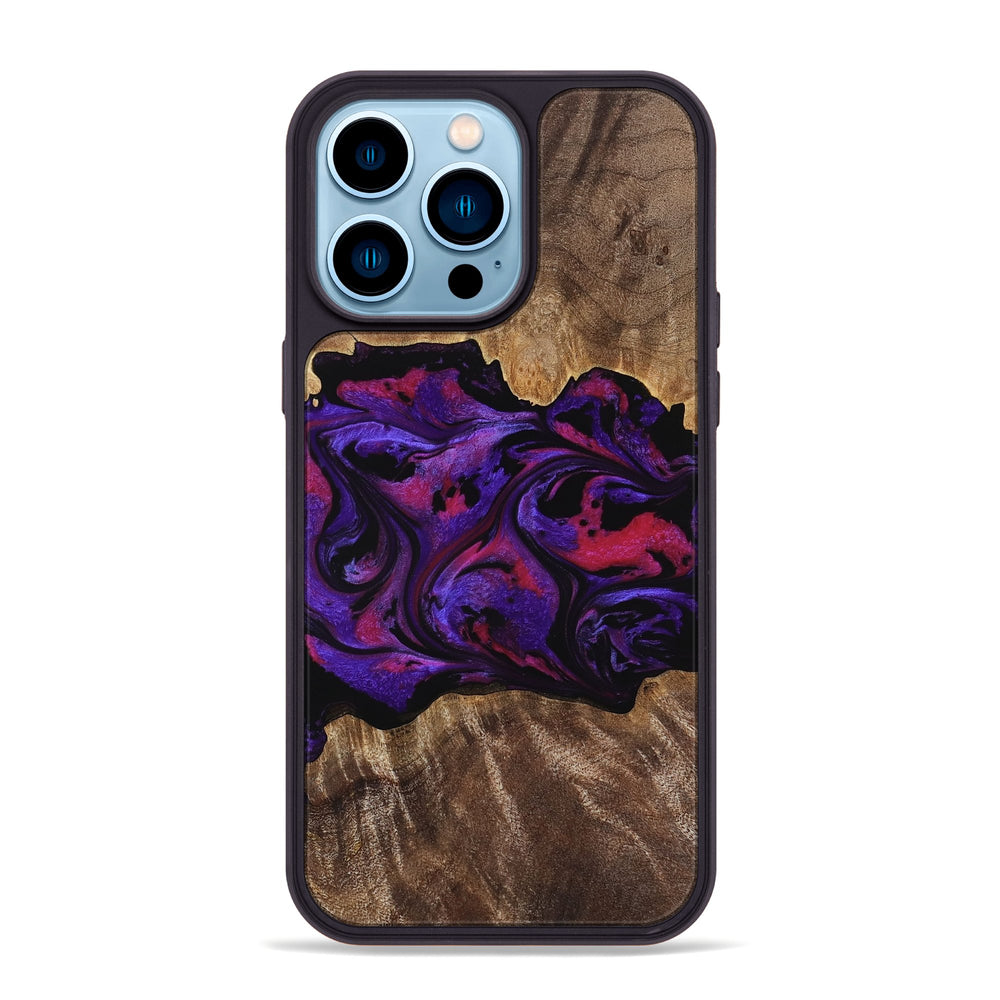 Altha has a warm, natural Maple wood base that highlights beautiful grain patterns. It features a stunning swirl of deep purple and red tones that create a striking visual contrast.