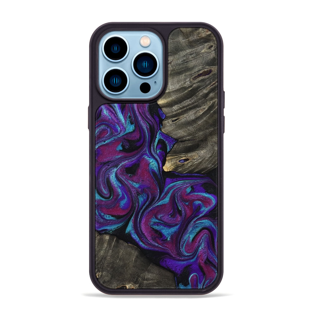 Alva features a beautiful swirl of vibrant purple and blue tones against a warm, natural wood backdrop. The flowing pattern creates a sense of movement, making it visually striking and unique.