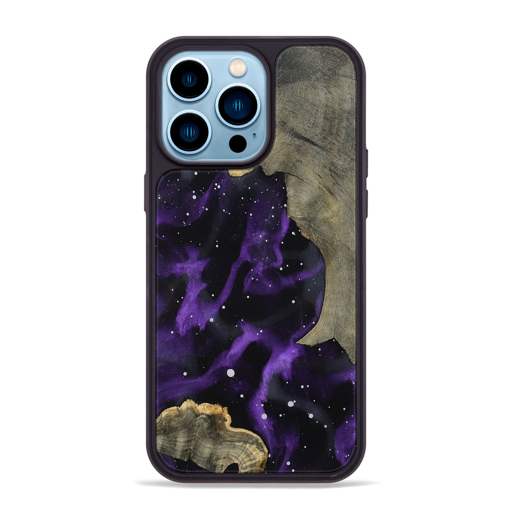 Daija has a beautiful mix of rich Buckeye wood grain that flows seamlessly into deep purple hues. The design features a cosmic pattern, creating a sense of deep space and intrigue.