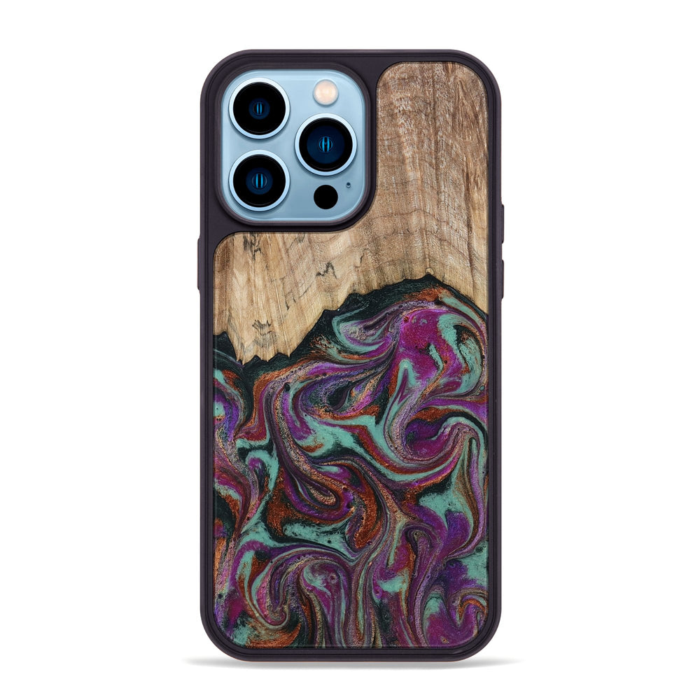 Darrel has a warm, light brown color with subtle grain patterns that enhance its natural beauty. The vibrant swirls of purple and green create an eye-catching contrast, adding a playful touch to the wood’s smooth surface.