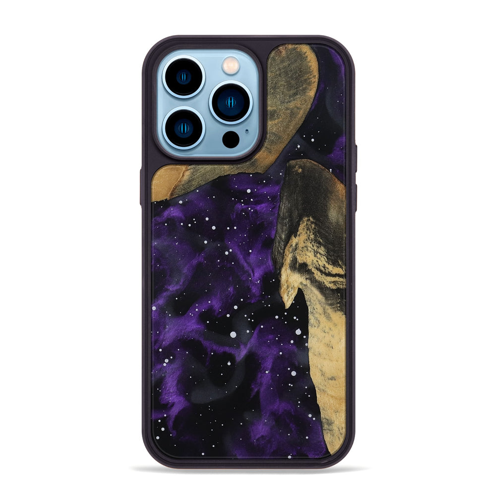 Darwin is a striking piece of Buckeye wood that showcases its natural patterns and textures. The warm tones of the wood contrast beautifully with the cool purple and black background, creating a cosmic feel.