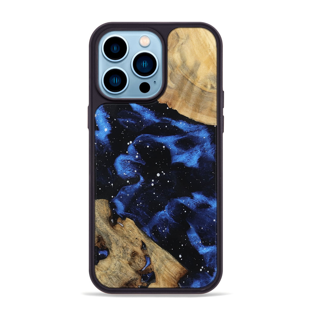 Davian has a warm, natural wood tone that beautifully contrasts with deep, swirling blues. Its surface features a starry pattern that adds a touch of cosmic charm.