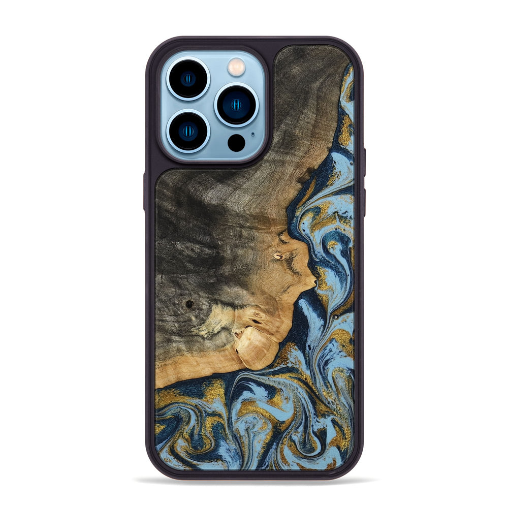 Denis is a striking piece of Buckeye wood with smooth, flowing patterns in blue and gold. It features rich, dark wood tones that create a beautiful contrast with the vibrant colors.