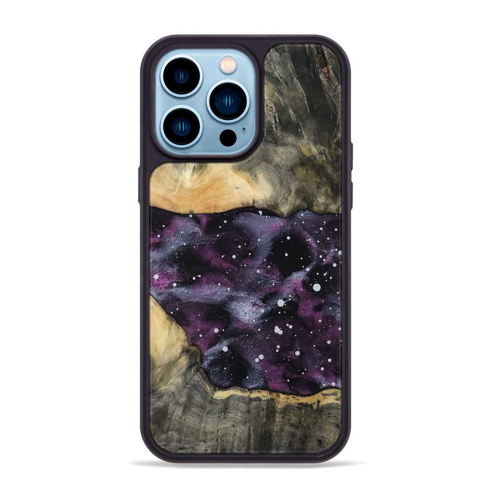 Haleigh has a rich, natural wood grain with warm tones that complement its unique design. It features a beautiful galaxy pattern of deep purples and subtle white specks, creating a striking contrast.
