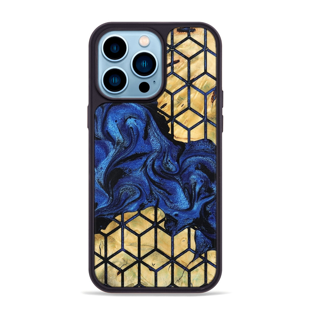 Harlee has a striking blend of deep blue swirls that contrast beautifully with the warm tones of Buckeye wood. Its hexagonal pattern adds a modern touch, making it a captivating piece of art.