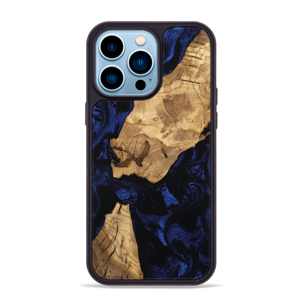 Issac features beautiful olive wood with warm golden tones and interesting grain patterns. The deep blue background swirls around the wood, creating a striking contrast that draws the eye.