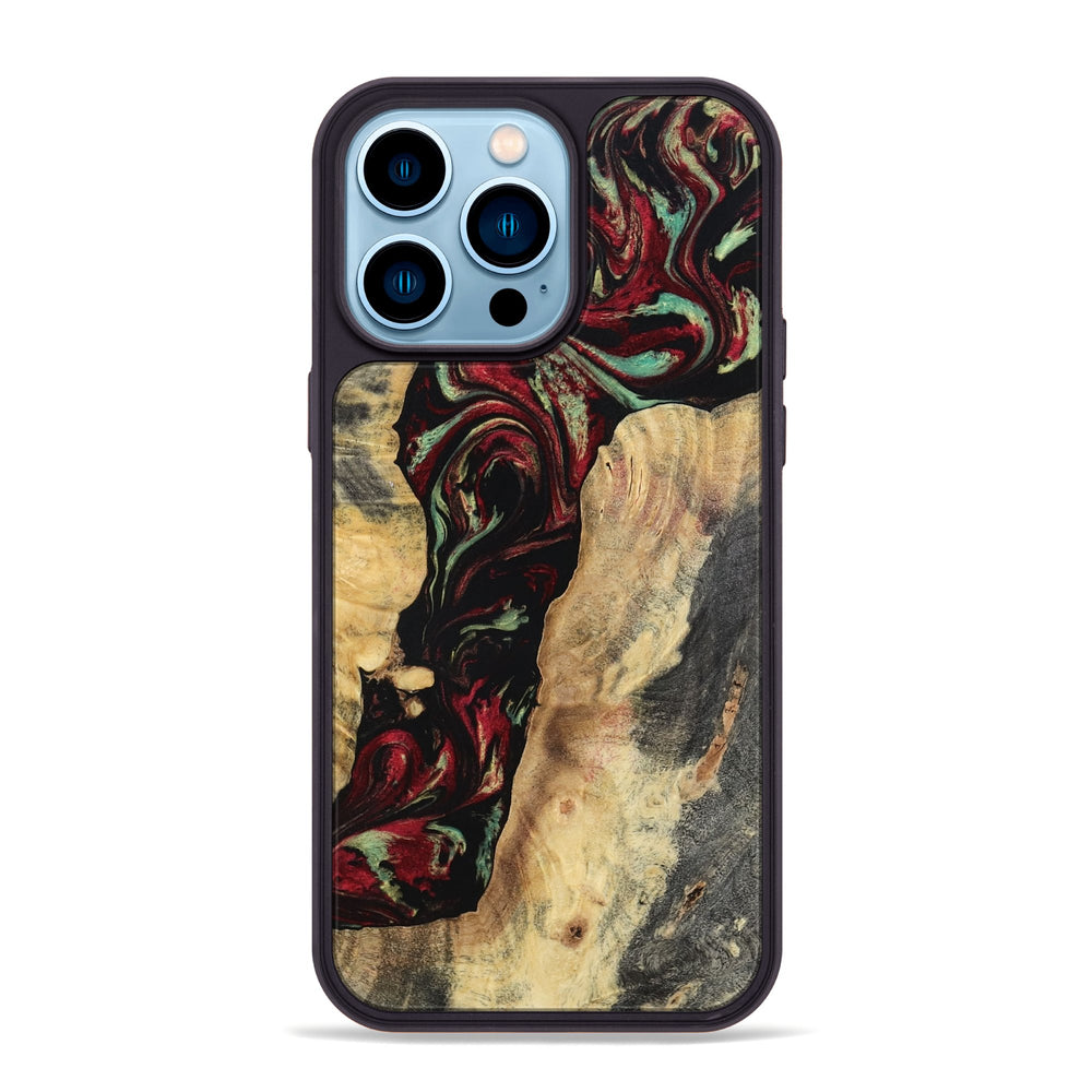 Kaiden has smooth, swirled patterns in deep red and green, blending beautifully with the natural wood grain. Its striking design draws the eye and adds a warm touch to any space.
