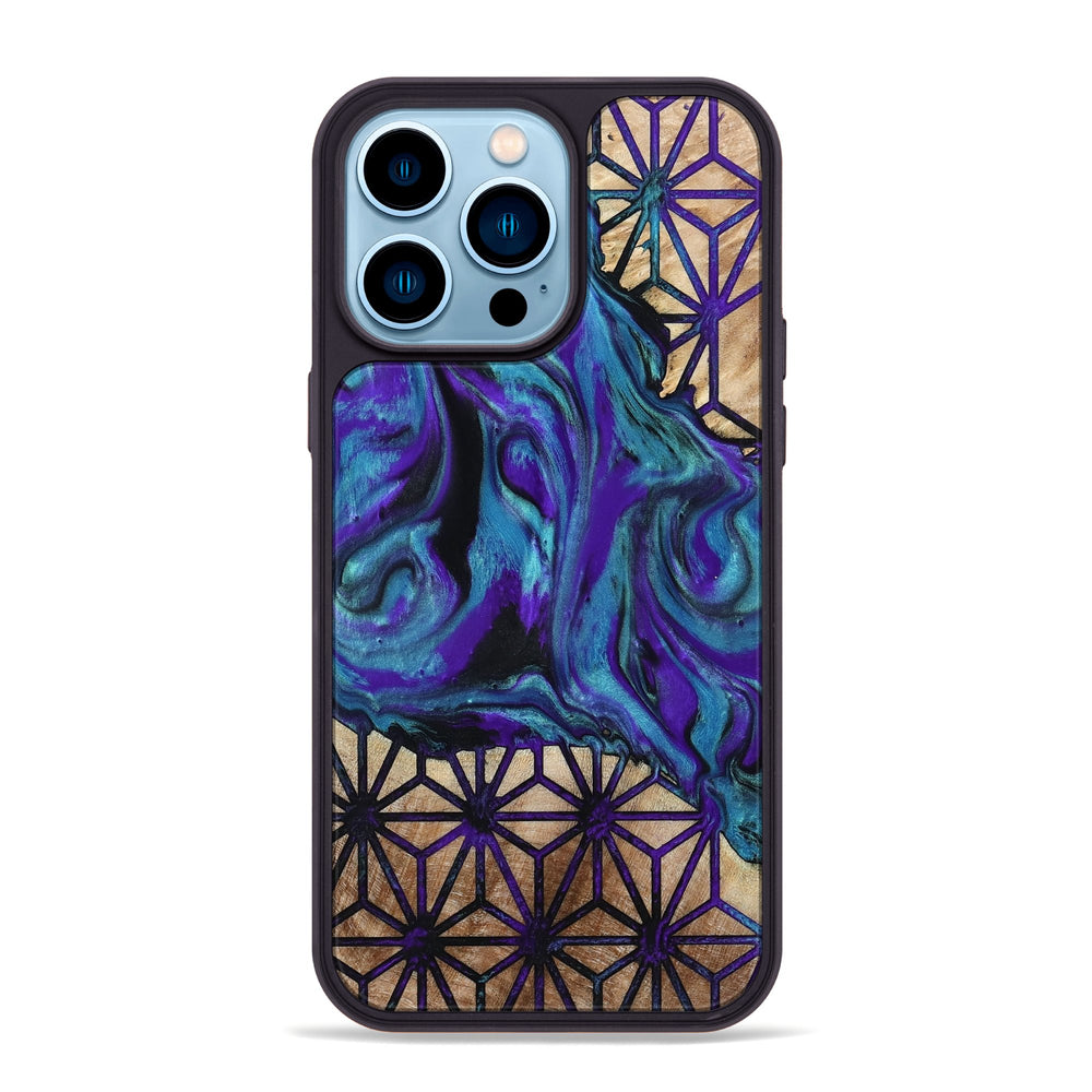 Marnie has a smooth Maple wood surface with a warm, natural glow. The vibrant swirls of purple and blue create a bold contrast against the light wood, adding a unique touch.