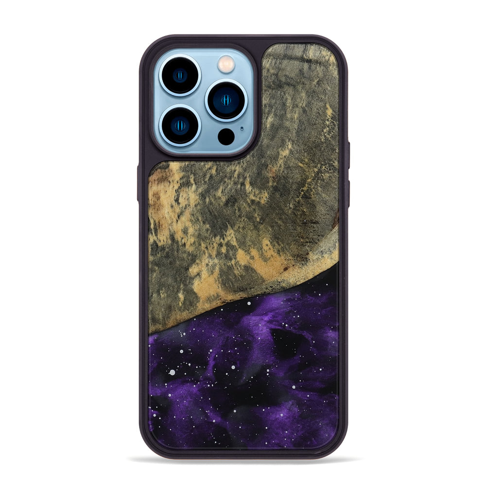 Myah has a unique mix of warm wood tones and dark, rich patterns. The contrast between the natural grain and the deep purple background creates a striking visual harmony.