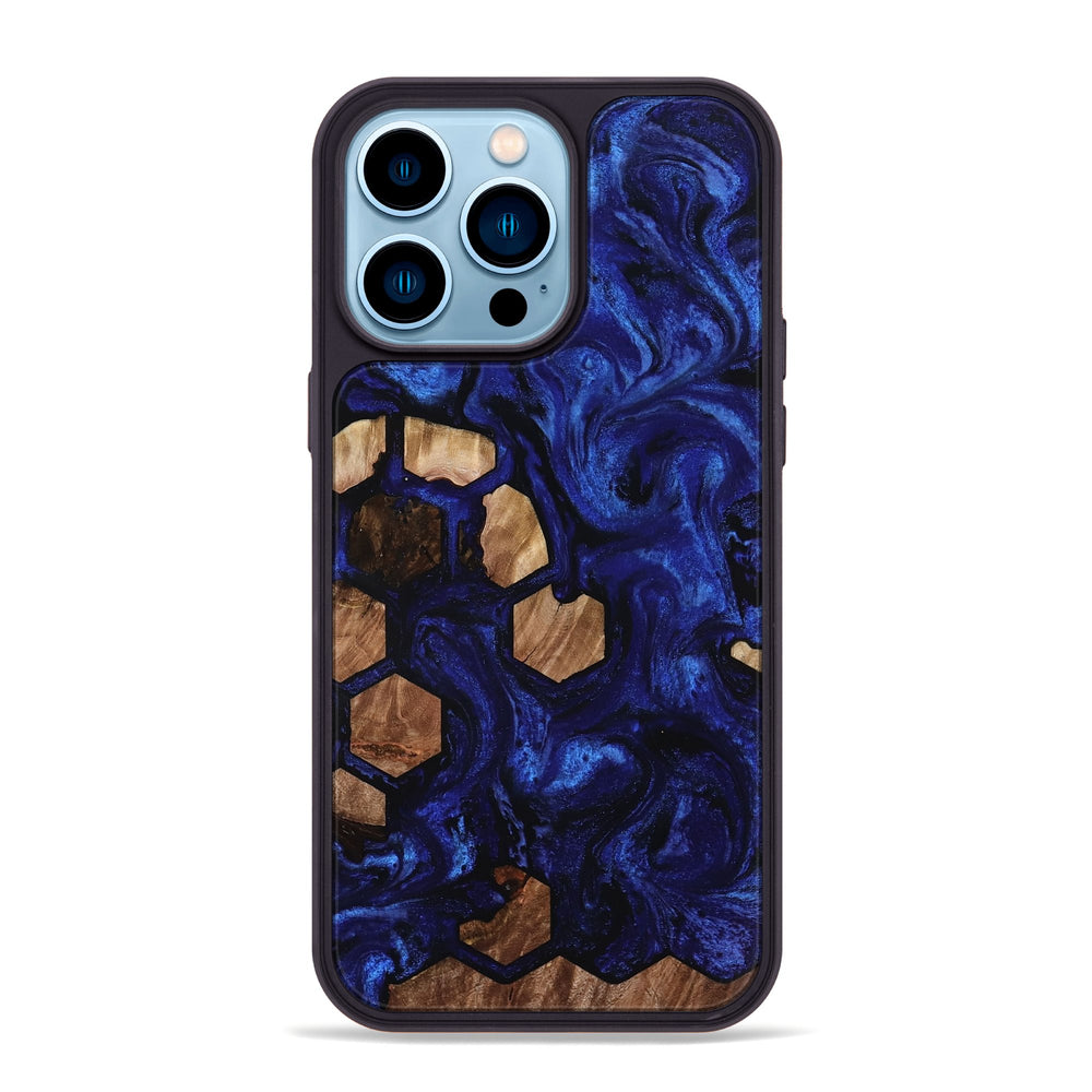 Verla has a rich maple wood base with a warm, natural grain. It features a striking blue swirl pattern that adds a bold contrast to the wood.