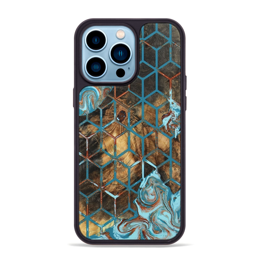 Wesson is a striking Buckeye wood featuring a unique hexagonal pattern. It has beautiful swirls of blue and earthy tones that create a vibrant, colorful contrast.