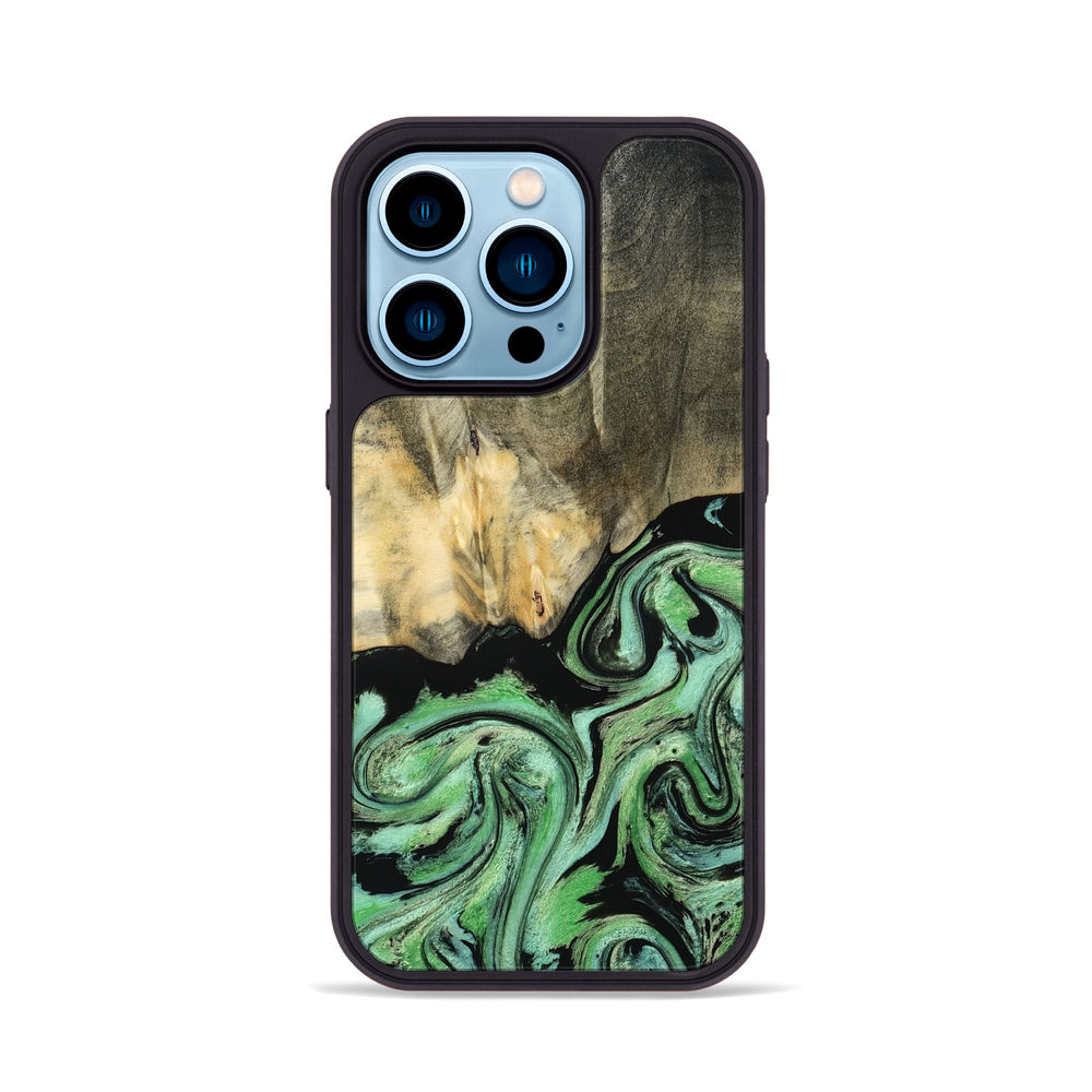 Tamie has a beautiful mix of dark and light wood, showcasing its natural grain. The swirling patterns in vibrant green create a unique and eye-catching contrast.