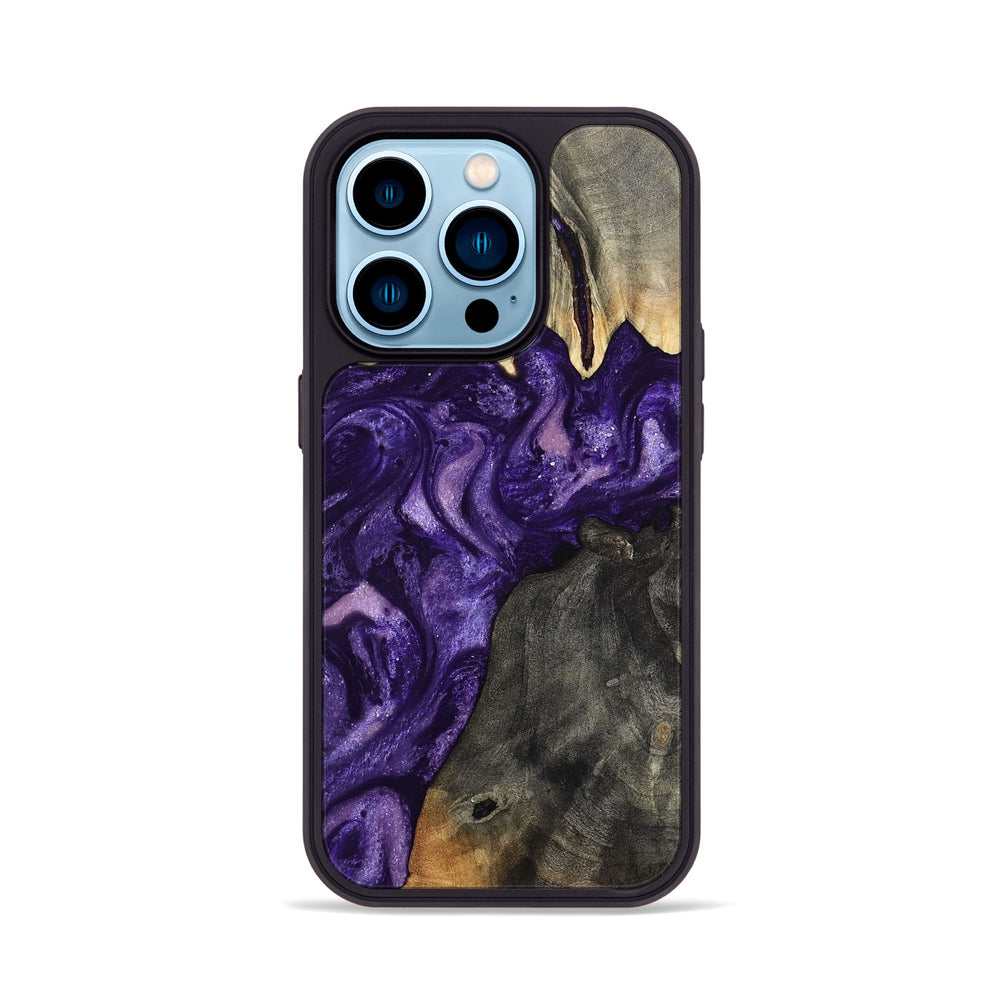 Collins has a striking mix of rich purple tones swirling across its surface. The wood shows beautiful natural grains that contrast with the vibrant colors, creating a unique artistic pattern.