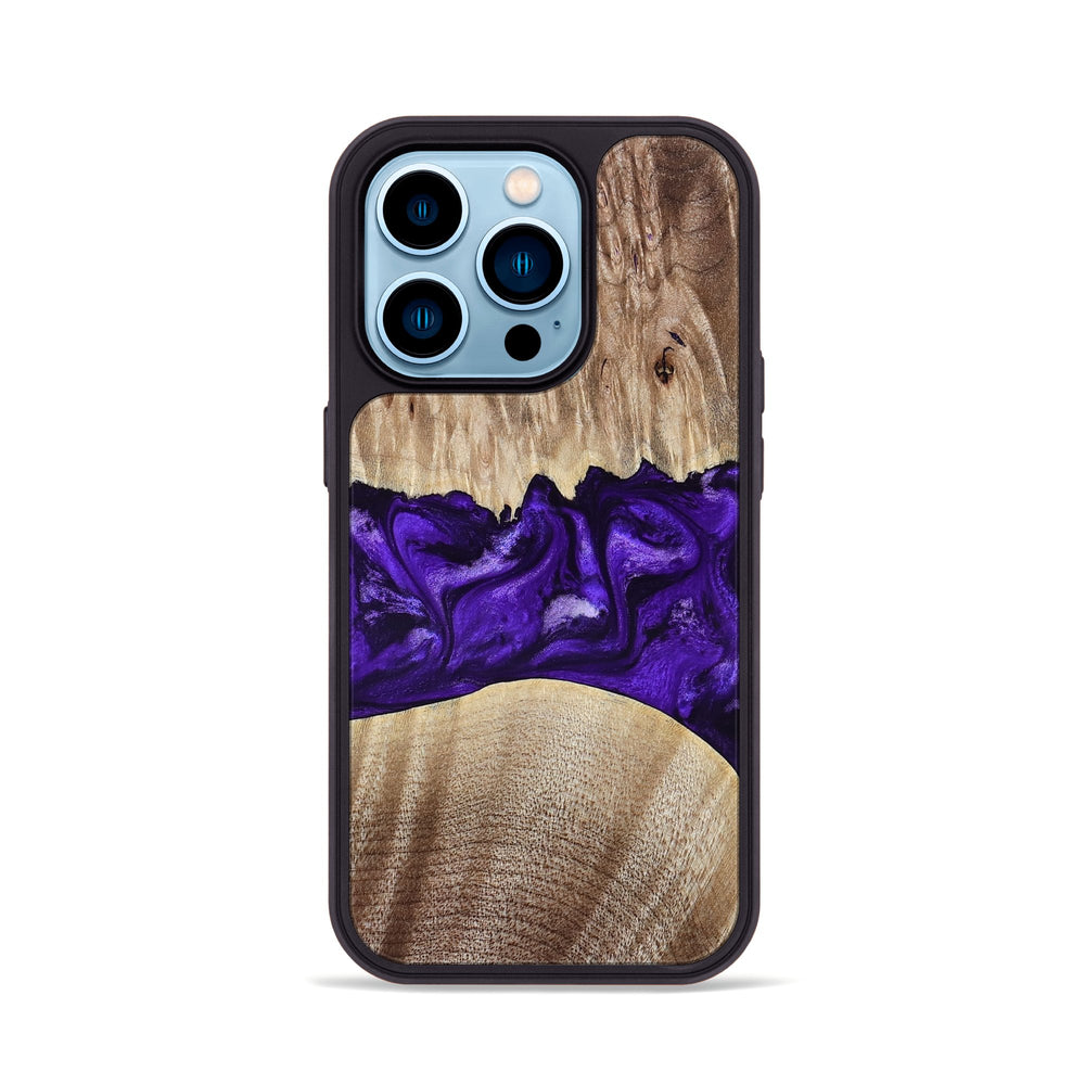 Kameron has a smooth, light maple wood surface with beautiful grain patterns. It features a striking contrast of deep purple that flows elegantly across the wood.