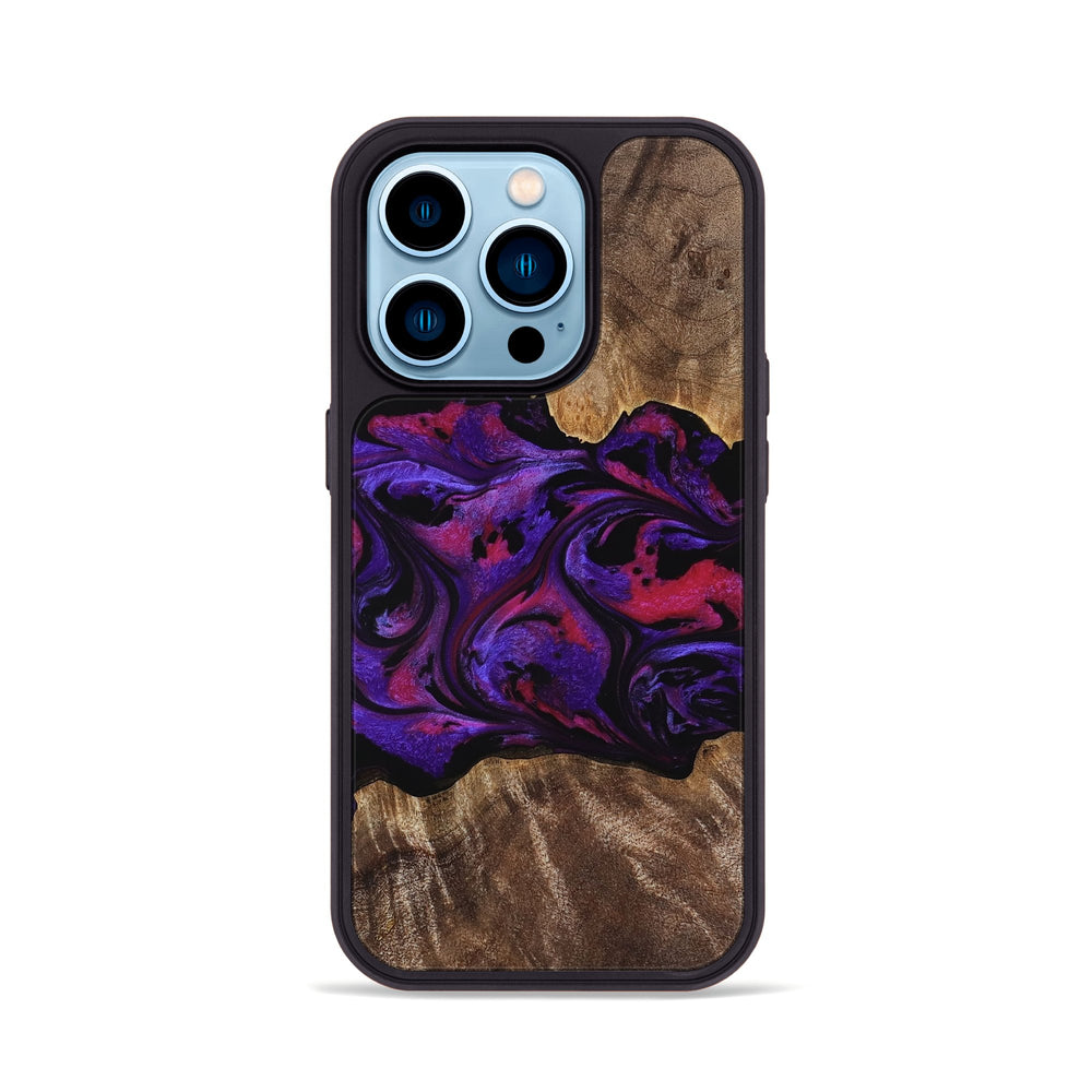 Altha has a warm, natural Maple wood base that highlights beautiful grain patterns. It features a stunning swirl of deep purple and red tones that create a striking visual contrast.