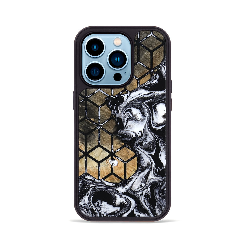 Fredric is a unique piece of Buckeye wood featuring a striking pattern of hexagons. The smooth swirls of black and white create a dynamic contrast with the natural wood tones.