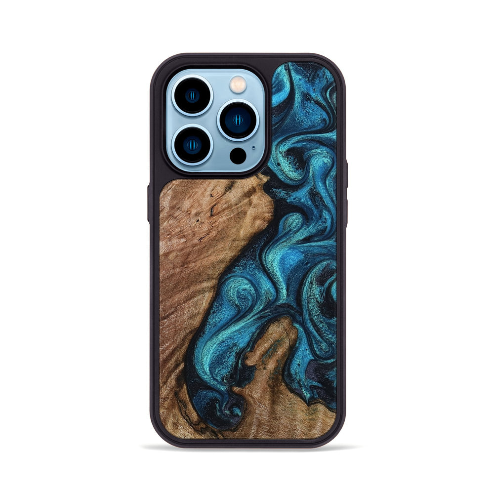 Landyn has beautiful patterns of rich brown Maple wood, showcasing its natural grain. Swirls of blue flow across the surface, creating a calming and harmonious look.