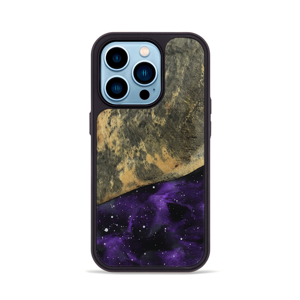 Myah has a unique mix of warm wood tones and dark, rich patterns. The contrast between the natural grain and the deep purple background creates a striking visual harmony.