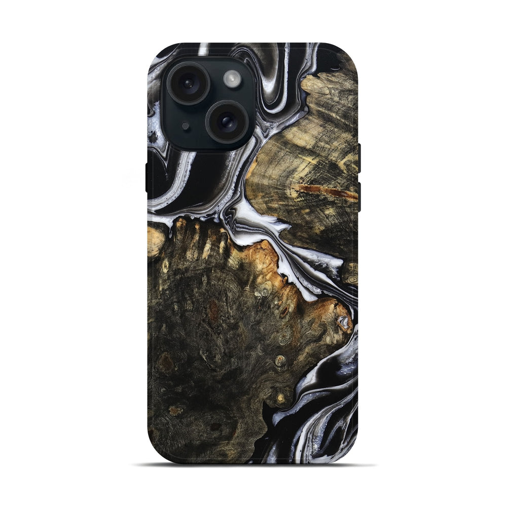 Our Live Edge cases are made from an amazing combination of stabilized wood burl and colored resin. Our stabilization process hardens the wood to protect against cracks and breaks. We do every step of the process at our shop in Northern Indiana. Perfectly fits the iPhone 15.