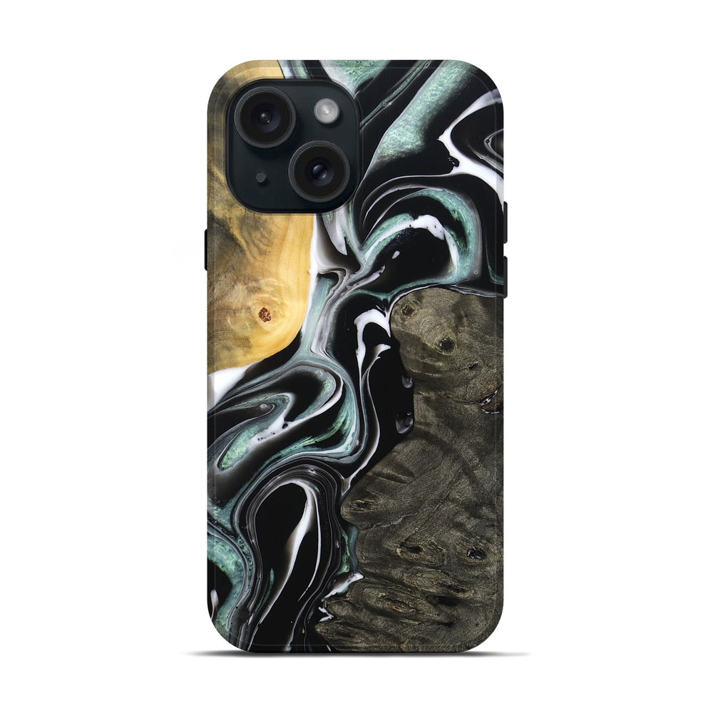 Our Live Edge cases are made from an amazing combination of stabilized wood burl and colored resin. Our stabilization process hardens the wood to protect against cracks and breaks. We do every step of the process at our shop in Northern Indiana. Perfectly fits the iPhone 15.