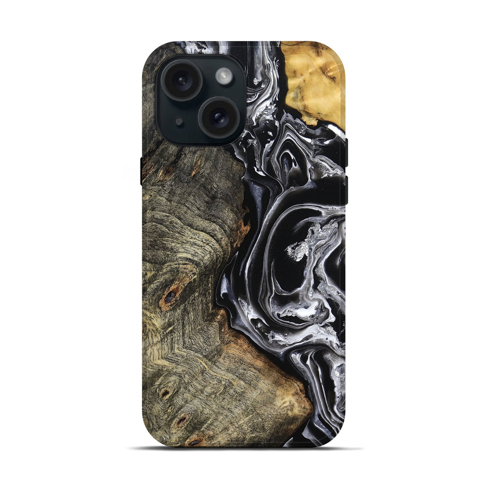 Our Live Edge cases are made from an amazing combination of stabilized wood burl and colored resin. Our stabilization process hardens the wood to protect against cracks and breaks. We do every step of the process at our shop in Northern Indiana. Perfectly fits the iPhone 15.
