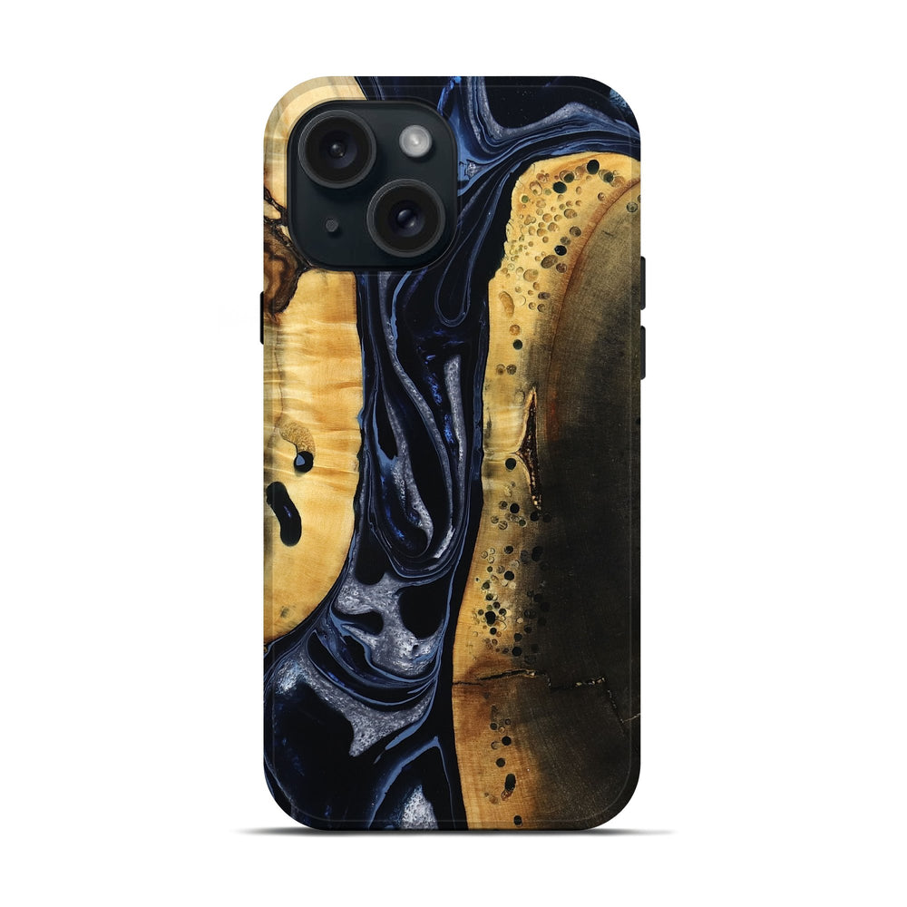Our Live Edge cases are made from an amazing combination of stabilized wood burl and colored resin. Our stabilization process hardens the wood to protect against cracks and breaks. We do every step of the process at our shop in Northern Indiana. Perfectly fits the iPhone 15.