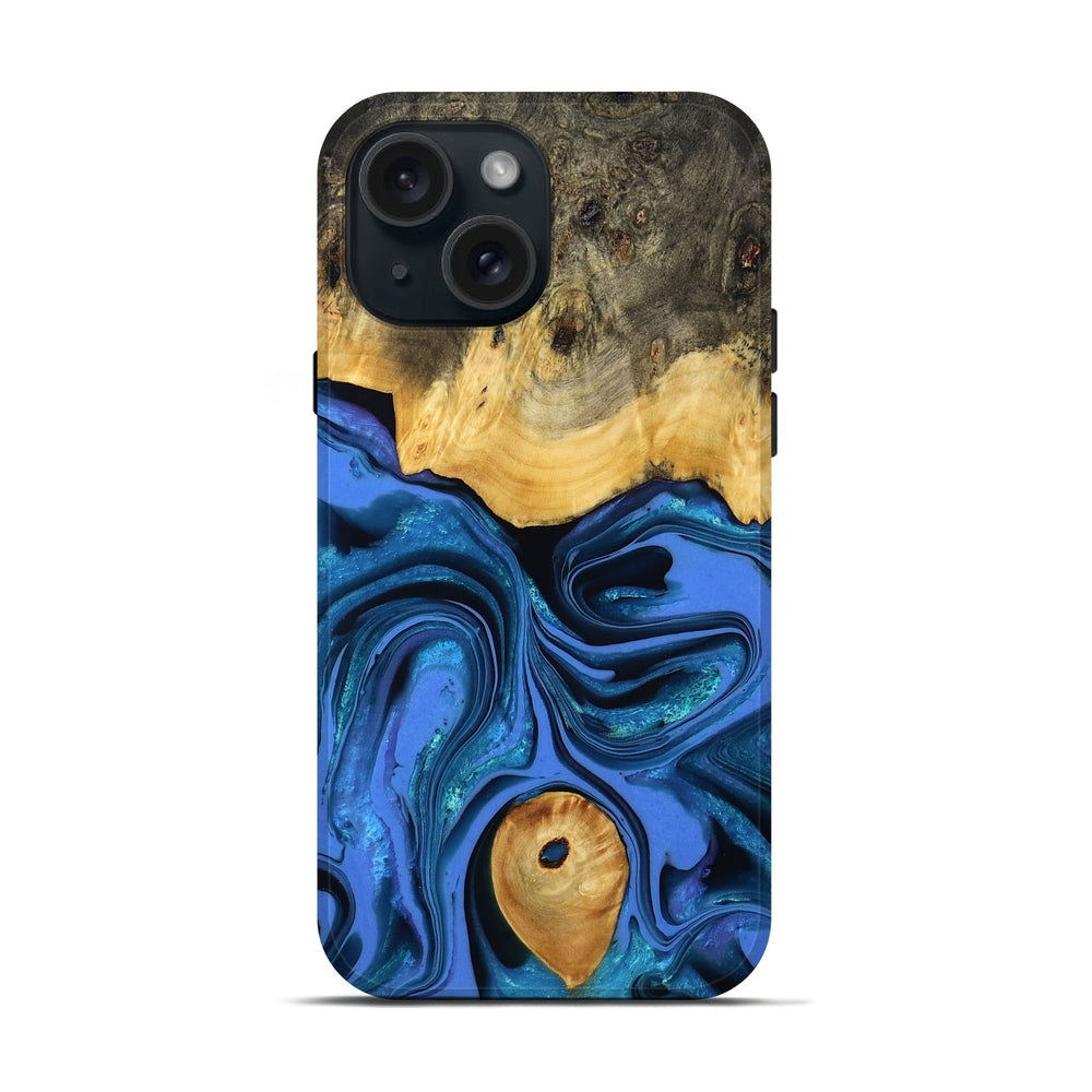 Our Live Edge cases are made from an amazing combination of stabilized wood burl and colored resin. Our stabilization process hardens the wood to protect against cracks and breaks. We do every step of the process at our shop in Northern Indiana. Perfectly fits the iPhone 15.