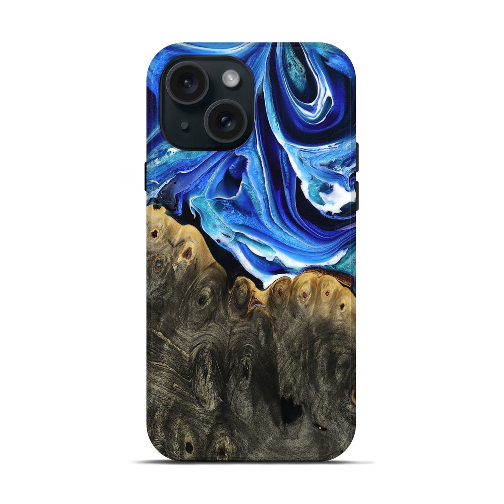 Our Live Edge cases are made from an amazing combination of stabilized wood burl and colored resin. Our stabilization process hardens the wood to protect against cracks and breaks. We do every step of the process at our shop in Northern Indiana. Perfectly fits the iPhone 15.