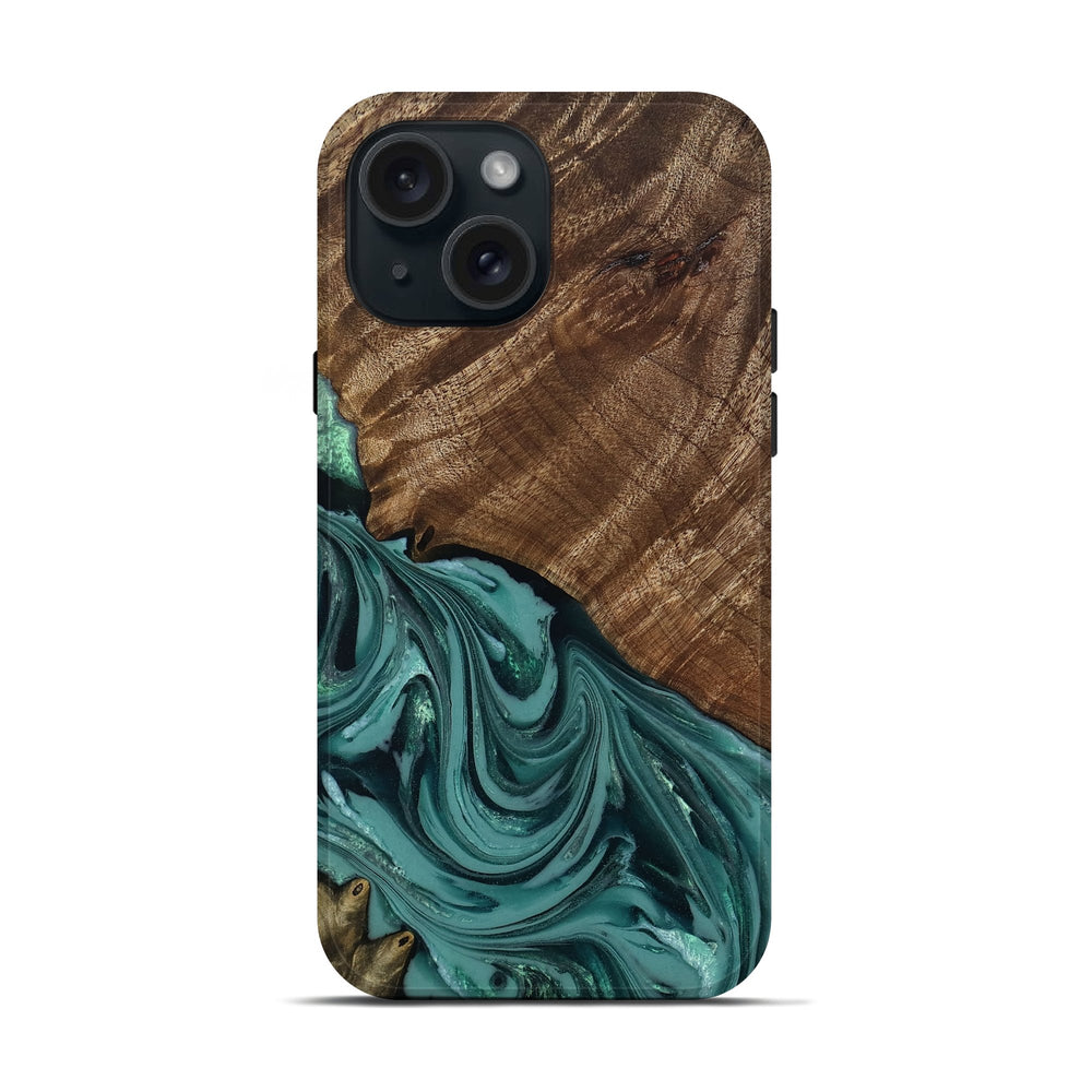 Our Live Edge cases are made from an amazing combination of stabilized wood burl and colored resin. Our stabilization process hardens the wood to protect against cracks and breaks. We do every step of the process at our shop in Northern Indiana. Perfectly fits the iPhone 15.