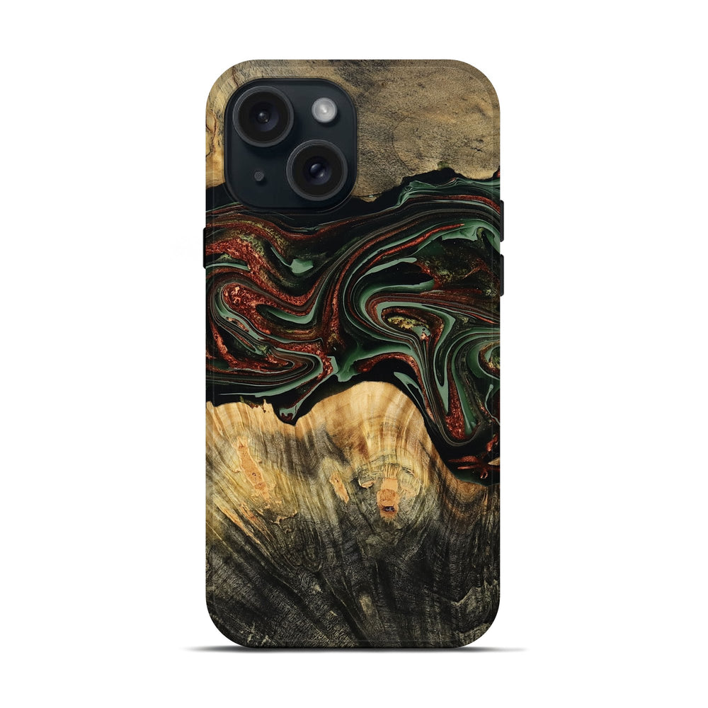 Our Live Edge cases are made from an amazing combination of stabilized wood burl and colored resin. Our stabilization process hardens the wood to protect against cracks and breaks. We do every step of the process at our shop in Northern Indiana. Perfectly fits the iPhone 15.