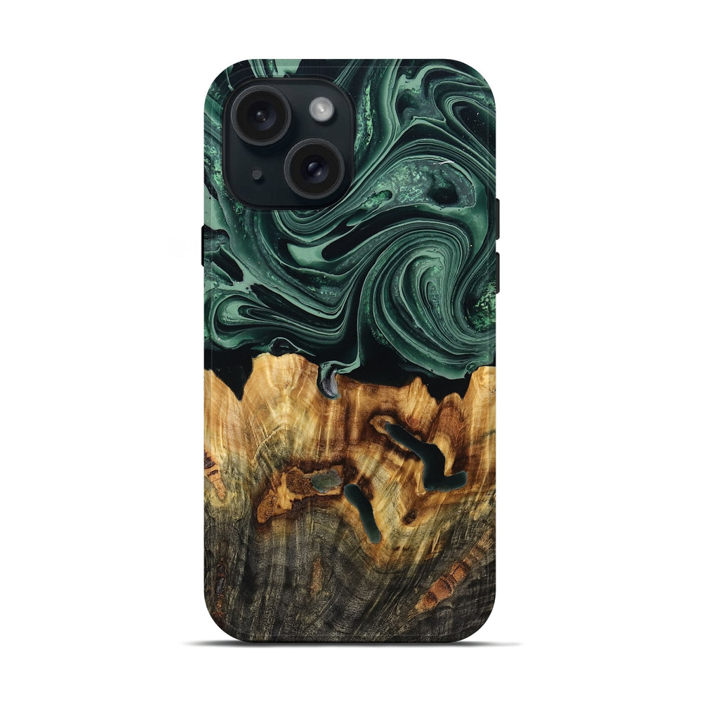 Our Live Edge cases are made from an amazing combination of stabilized wood burl and colored resin. Our stabilization process hardens the wood to protect against cracks and breaks. We do every step of the process at our shop in Northern Indiana. Perfectly fits the iPhone 15.